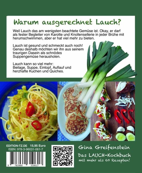 Warum ausgerechnet Lauch? Weil Lauch das am wenigsten beachtete Gemüse ist. Okay, er darf als fester Begleiter von Karotte und Knollensellerie in jeder Brühe herumschwimmen, aber er hat viel mehr zu bieten.Lauch ist gesund und schmeckt auch noch! Genau deshalb möchten wir ihn aus seinem traurigen Dasein als schnödes Suppengemüse herausholen. Lauch kann so viel mehr: Beilage, Suppe, Eintopf, Auflauf und herzhafte Kuchen und Quiches.