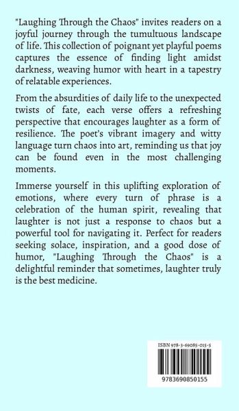"Laughing Through the Chaos" invites readers on a joyful journey through the tumultuous landscape of life. This collection of poignant yet playful poems captures the essence of finding light amidst darkness, weaving humor with heart in a tapestry of relatable experiences. From the absurdities of daily life to the unexpected twists of fate, each verse offers a refreshing perspective that encourages laughter as a form of resilience. The poet's vibrant imagery and witty language turn chaos into art, reminding us that joy can be found even in the most challenging moments. Immerse yourself in this uplifting exploration of emotions, where every turn of phrase is a celebration of the human spirit, revealing that laughter is not just a response to chaos but a powerful tool for navigating it. Perfect for readers seeking solace, inspiration, and a good dose of humor, "Laughing Through the Chaos" is a delightful reminder that sometimes, laughter truly is the best medicine.