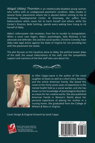 Abigail (Abby) Thornton is an intellectually-disabled young woman who suffers with an undiagnosed psychiatric condition. Abby resides in several foster placements where she is abused before coming to live at Greenway Developmental Center. At Greenway, she suffers from hallucinations which cause her to harm herself and others; while the Center's Director, Belle Farthing, spends every waking hour trying to rid herself of Abby. Abby's rollercoaster ride escalates, from fire to murder to strangulation. When a court case lingers, Abby's psychologist, Sally McGraw, is her advocate and defender. She and the social worker, Christine Connelly, have Abby take legal action against the State of Virginia for not providing her with the placement she needs. The plot focuses on the injustices done to Abby, the political power plays of the staff, the sexual indiscretions of the staff, and the sympathetic support and reactions of the few staff who care about her.c