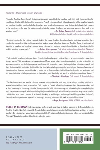 In Launch a Teaching Career: Secrets for Aspiring Teachers, Dr. Peter Leibman explains in great detail how to avoid the resume pile, enhance your candidacy, and move to the head of the class. A step-by-step plan of action is presented giving you a comprehensive guide to achieve your goal of becoming a teacher.