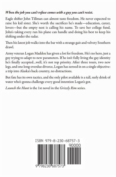 After three tours, two new legs, and one long-overdue divorce, Logan is counting on a relaxing wilderness trip, no distractions. He doesn't expect to meet his match in John, the tall drink of water serving as his guide...and who's secretly an eagle shifter. ~ Eagle shifter John Tillman can almost taste freedom. He never expected to raise his kid sister. She's worth the sacrifices he's made-education, career, lovers-but the empty nest is calling his name. To save her college fund, John's taking every run his plane can handle and doing his best to keep his shifting under the radar. Then his latest job walks into the bar with a strange gait and velvety Southern drawl. ~ Army veteran Logan Maddox has given a lot for freedom. He's no hero, just a guy trying to adapt to new parameters. If he isn't fully living the gay identity he's finally accepted...well, it's not top priority. After three tours, two new legs, and one long-overdue divorce, Logan has zeroed in on a single objective: a trip into Alaska's back country, no distractions. But fate has its own tactics, and the only pilot available is a tall, surly drink of water who's gonna challenge every good intention Logan's got. LAUNCH THE HUNT is the 1st novel in the GRIZZLY RIM m/m shifter series. Strap in for late-night tent shenanigans, chilly skinny-dipping, slow dancing with consequences, and a couple of rules just begging to be broken. Tropes include single dads, forced proximity, and hurt/comfort. Note: This story depicts parental loss, combat injuries & physical therapy, internal & external ableism, and teens making bad decisions.