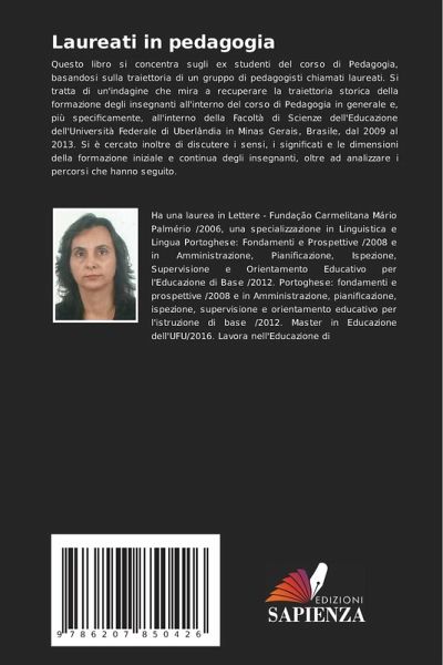 Questo libro si concentra sugli ex studenti del corso di Pedagogia, basandosi sulla traiettoria di un gruppo di pedagogisti chiamati laureati. Si tratta di un'indagine che mira a recuperare la traiettoria storica della formazione degli insegnanti all'interno del corso di Pedagogia in generale e, più specificamente, all'interno della Facoltà di Scienze dell'Educazione dell'Università Federale di Uberlândia in Minas Gerais, Brasile, dal 2009 al 2013. Si è cercato inoltre di discutere i sensi, i significati e le dimensioni della formazione iniziale e continua degli insegnanti, oltre ad analizzare i percorsi che hanno seguito.