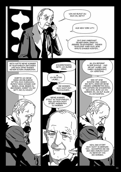 Sie waren 2 Männer mit 7 Namen: Ob als »Stan & Ollie«, als »Dick und Doof«, verkürzt als »The Boys« oder ganz klassisch als »Laurel und Hardy« ohne Stan Laurel und Oliver Hardy wäre die Geschichte des Films anders verlaufen! 1927 als Komiker-Duo gegründet, erlangten die beiden schnell internationale Bekanntheit und bis heute andauernden Ruhm. Über 100 Filme, zunächst stumm, später mit Ton, und sogar ein Oscar für den verzweifeltsten Klaviertransport aller Zeiten entsprangen den fast 30 Jahren ihrer Zusammenarbeit. Diese Graphic-Novel-Biografie zeichnet ihre Karriere in prägnantem Schwarz-Weiß nach, wirft Schlaglichter auf amüsante Anekdoten einer unzertrennlichen Freundschaft und lässt auch die zahlreichen Widrigkeiten nicht aus, die das Duo überwinden musste, ihm seine kreative Freiheit zu bewahren. Wie schon »George Lucas«, »Alfred Hitchcock« und »Quentin Tarantino« ist auch dieser Comic ein Muss für Filmliebhaber!