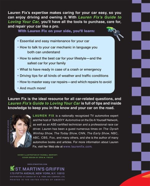 Lauren Fix's straight-forward, clear and fun advice makes caring for your car easy so you can actually enjoy driving and owning one. With Lauren Fix's Guide to Loving Your Car, you'll soon be a confident, knowledgeable car owner who knows what is important in taking care of your car. With Lauren Fix on your side, you'll know: *How to select the best car for your lifestyle--and safest car for your family *Essential and easy maintenance for your car *What to have ready in case of a crash or emergency *Driving tips for all kinds of weather and traffic conditions *How to talk to your car mechanic in language you can both understand *How to master easy car repairs--and which repairs to avoid *Much more! Lauren Fix is the ideal resource for all car-related questions, and Lauren Fix's Guide to Loving Your Car is full of tips and inside knowledge to keep you in the know and your car on the road.