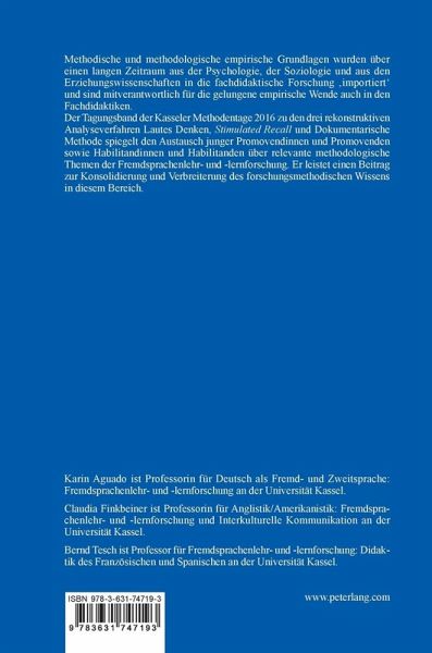 Der Tagungsband der Kasseler Methodentage 2016 zu den drei rekonstruktiven Analyseverfahren Lautes Denken, «Stimulated Recall» und Dokumentarische Methode spiegelt den Austausch junger Promovendinnen und Promovenden sowie Habilitandinnen und Habilitanden über relevante methodisch-methodologische Themen der Sprachlehr- und -lernforschung. Er leistet einen Beitrag zur Konsolidierung und Verbreiterung des forschungsmethodischen Wissens in diesem Bereich.