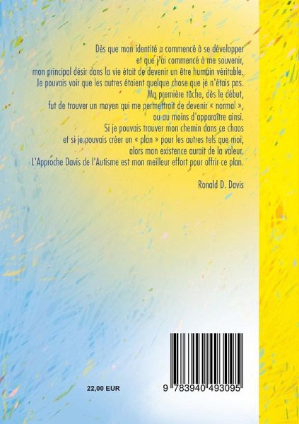 Ce livre fournit des explications et outils fondamentaux à l'aide desquels les personnes touchées par l'autisme peuvent découvrir leur potentiel et en profiter pleinement. Il nous raconte comment la méthode Davis a été développée et la met en perspective avec les recherches les plus récentes dans le domaine de l'autisme et des neurosciences. Il nous guide à travers les trois phases de l'approche Davis de l'autisme : individualisation, développement de l'identité et intégration sociale. L'approche Davis de l'autisme qu'on peut qualifié par le terme américain "empowerments", est unique dans le sens qu'elle s'oriente systématiquement à la perspective autiste ; elle permet ainsi aux autistes de mieux comprendre non seulement leur propre monde, mais aussi les intentions et comportements de leur entourage.