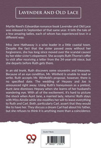 Myrtle Reed's Edwardian romance book Lavender and Old Lace was released in September of that same year. It tells the tale of a few amazing ladies, each of whom has experienced love in a different way. Miss Jane Hathaway is a wise leader in a little coastal town. Despite the fact that the sister passed away without her forgiveness, she has long since moved over the scandal caused by her elder sister's elopement. She accepts Ruth Thorne's offer to visit after receiving a letter from the 34-year-old niece, but she departs before Ruth gets there. In an old trunk, Ruth discovers some souvenirs and treasures. Because of an eye condition, Mr. Winfield is unable to read or write. Ruth accepts Mr. Winfield's proposal, however, there is no specified date. The wedding of Hepsey and Joe is announced right away. Using Ruth's honeymoon as a pretext, Aunt Jane dismisses Hepsey when she learns of her husband's wandering eye. With all of the excitement, it's hard to picture the shock when Aunt Jane, a married lady, returns! Ruth stays with Miss Ainslie while she modifies her will to leave everything to Ruth and Carl. Both, particularly Carl, assert that they would like to have her. They discuss a dream Carl had about his father, but she refuses to think it is anything more than a coincidence.