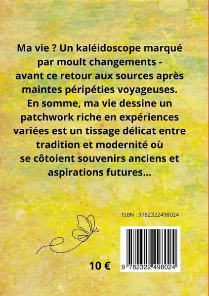 Ma vie ? Un kaléidoscope marqué par moult changements - avant ce retour aux sources après maintes péripéties voyageuses. En somme, ma vie dessine un patchwork riche en expériences variées est un tissage délicat entre tradition et modernité où se côtoient souvenirs anciens et aspirations futures...