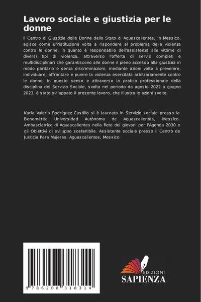 Il Centro di Giustizia delle Donne dello Stato di Aguascalientes, in Messico, agisce come un'istituzione volta a rispondere al problema della violenza contro le donne, in quanto è responsabile dell'assistenza alle vittime di diversi tipi di violenza, attraverso l'offerta di servizi completi e multidisciplinari che garantiscono alle donne il pieno accesso alla giustizia in modo paritario e senza discriminazioni, mediante azioni volte a prevenire, individuare, affrontare e punire la violenza esercitata arbitrariamente contro le donne. In questo senso e attraverso la pratica professionale della disciplina del Servizio Sociale, svolta nel periodo da agosto 2022 a giugno 2023, è stato sviluppato il presente lavoro, che illustra le azioni svolte.