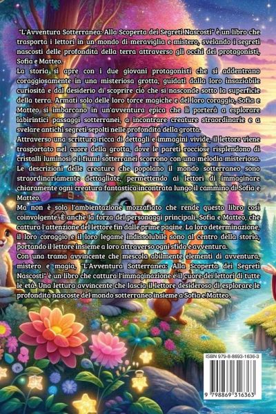 "L'Avventura Sotterranea: Alla Scoperta dei Segreti Nascosti" è un libro che trasporta i lettori in un mondo di meraviglia e mistero, svelando i segreti nascosti delle profondità della terra attraverso gli occhi dei protagonisti, Sofia e Matteo. La storia si apre con i due giovani protagonisti che si addentrano coraggiosamente in una misteriosa grotta, guidati dalla loro insaziabile curiosità e dal desiderio di scoprire ciò che si nasconde sotto la superficie della terra. Armati solo delle loro torce magiche e del loro coraggio, Sofia e Matteo si imbarcano in un'avventura epica che li porterà a esplorare labirintici passaggi sotterranei, a incontrare creature straordinarie e a svelare antichi segreti sepolti nelle profondità della grotta. Attraverso una scrittura ricca di dettagli e immagini vivide, il lettore viene trasportato nel cuore della grotta, dove le pareti rocciose risplendono di cristalli luminosi e i fiumi sotterranei scorrono con una melodia misteriosa. Le descrizioni delle creature che popolano il mondo sotterraneo sono straordinariamente dettagliate, permettendo ai lettori di immaginare chiaramente ogni creatura fantastica incontrata lungo il cammino di Sofia e Matteo. Ma non è solo l'ambientazione mozzafiato che rende questo libro così coinvolgente. È anche la forza dei personaggi principali, Sofia e Matteo, che cattura l'attenzione del lettore fin dalle prime pagine. La loro determinazione, il loro coraggio e il loro legame indissolubile sono al centro della storia, portando il lettore insieme a loro attraverso ogni sfida e avventura. Con una trama avvincente che mescola abilmente elementi di avventura, mistero e magia, "L'Avventura Sotterranea: Alla Scoperta dei Segreti Nascosti" è un libro che cattura l'immaginazione e il cuore dei lettori di tutte le età. Una lettura avvincente che lascia il lettore desideroso di esplorare le profondità nascoste del mondo sotterraneo insieme a Sofia e Matteo.