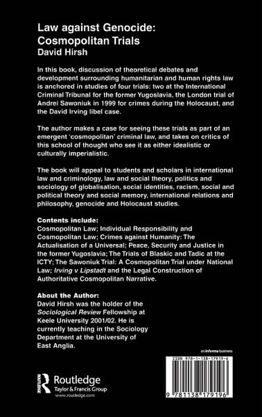 Bringing a sociologist's insight to legal institutions and narratives, this book is an innovative and timely sociological contribution to current concerns regarding critical cosmopolitanism, human rights and crimes against humanity.