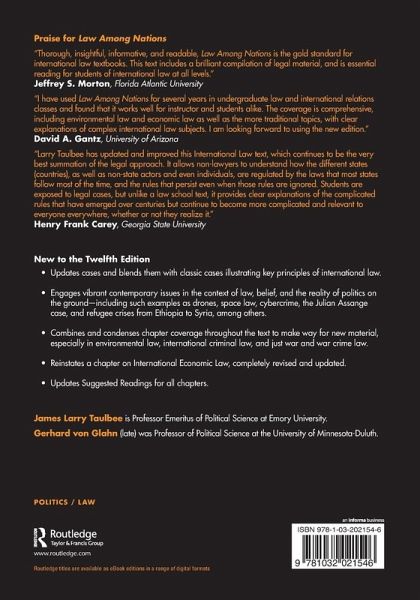 Larry Taulbee has updated and improved this International Law text, which continues to be the very best summation of the legal approach. It allows nonlawyers to understand how the different states (countries), as well as non-state actors and even individuals, are regulated by the laws that most states follow most of the time, and the rules that persist even when those rules are ignored. Students are exposed to legal cases, but unlike a law school text, it provides clear explanations of the complicated rules that have emerged over centuries but continue to become more complicated and relevant to everyone everywhere, whether or not they realize it.