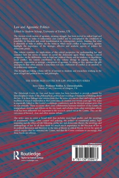 Law and Agonistic Politics examines the relation between law and politics in terms of a range of agonistic theories, influenced by authors such as Arendt, Schmitt, Nietzsche, Foucault, Ranciere, Lefort, Castoriadis and Honneth. This thought provoking volume will be of interest to students and researchers working in the areas of legal and political theory and philosophy