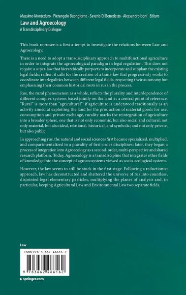 There is a need to adopt a transdisciplinary approach to multifunctional agriculture in order to integrate the agroecological paradigm in legal regulation. This does not require a super-law that hierarchically purports to incorporate and supplant the existing legal fields; rather, it calls for the creation of a trans-law that progressively works to coordinate interlegalities between different legal fields, respecting their autonomy but emphasizing their common historical roots in rus in the process.