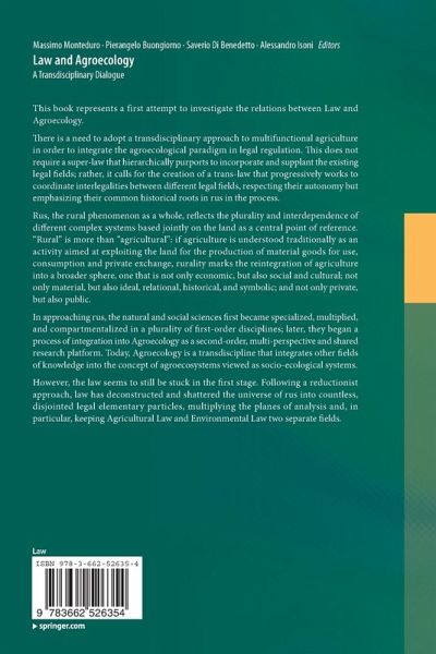 There is a need to adopt a transdisciplinary approach to multifunctional agriculture in order to integrate the agroecological paradigm in legal regulation. This does not require a super-law that hierarchically purports to incorporate and supplant the existing legal fields; rather, it calls for the creation of a trans-law that progressively works to coordinate interlegalities between different legal fields, respecting their autonomy but emphasizing their common historical roots in rus in the process.