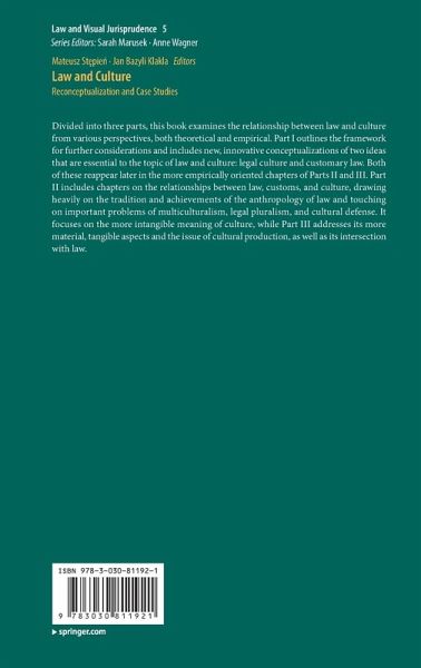 Divided into three parts, this book examines the relationship between law and culture from various perspectives, both theoretical and empirical. Part I outlines the framework for further considerations and includes new, innovative conceptualizations of two ideas that are essential to the topic of law and culture: legal culture and customary law. Both of these reappear later in the more empirically oriented chapters of Parts II and III. Part II includes chapters on the relationships between law, customs, and culture, drawing heavily on the tradition and achievements of the anthropology of law and touching on important problems of multiculturalism, legal pluralism, and cultural defense. It focuses on the more intangible meaning of culture, while Part III addresses its more material, tangible aspects and the issue of cultural production, as well as its intersection with law.