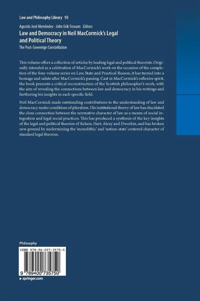 This volume offers a collection of articles by leading legal and political theorists. Originally intended as a celebration of MacCormick's work on the occasion of the completion of the four-volume series on Law, State and Practical Reason, it has turned into a homage and salute after MacCormick's passing. Cast in MacCormick's reflexive spirit, the book presents a critical reconstruction of the Scottish philosopher's work, with the aim of revealing the connections between law and democracy in his writings and furthering his insights in each specific field.