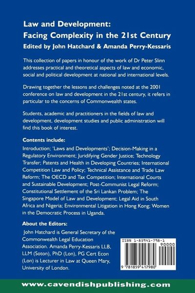 An edited collection of papers arising from a conference on "Law and Development in the 21st Century", held in 2001. In honour of the work of Dr Peter Slinn, the book draws together the lessons and challenges faced with particular reference to the concerns of Commonwealth states.