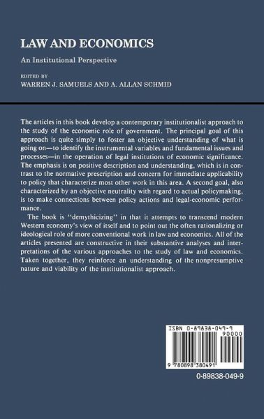 This book brings together a number of articles, for the most part already pub lished, that develop a contemporary institutionalist approach to the study of the economic role of government. The institutionalist tradition in these matters began with the work of Henry Carter Adams on economics and jurisprudence! and Richard T. Ely on the relation of the institutions of property and contract 2 to the distribution of wealth. It continued with John R. Commons's monu 3 mental analytical and historical study of the legal foundations of capitalism, Edwin E. Witte's work on the role of government in the economy,4 and Ken s neth Parson's study of economic developmenL The approach to law and economics that is developed in this book centers on (1) an identification of the objective fundamentals of the interrelations between legal and economic pro· cesses and (2) the development of skills with which to analyze and predict the performance consequences of alternative institutional designs. We must stress that our principal goal is quite simply to understand what is going on-to identify the instrumental variables and fundamental issues and processes-in the operation of legal institutions of economic significance. We envision government as an object of legal control. We also see law as an instrument of securing economic gain and advantage-that is, as a wealth producing and -acquiring alternative.