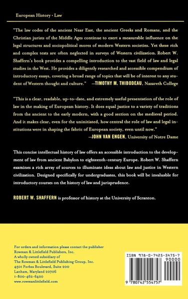This concise intellectual history of the law offers an accessible introduction to the development of law from ancient Babylon to eighteenth-century Europe. Robert W. Shaffern examines a rich array of sources to illuminate ideas about law and justice in Western civilization. Designed specifically for undergraduates to the subject, this book will be invaluable for introductory courses on the history of law and jurisprudence.