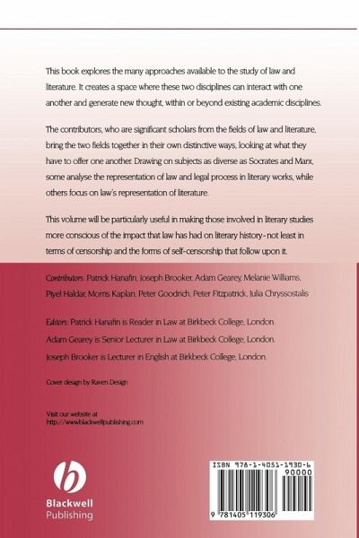 This book explores the many approaches available to the study of law and literature. It creates a space where these two disciplines can interact with one another and generate new thought, within or beyond existing academic disciplines. The contributors, who are significant scholars from the fields of law and literature, bring the two fields together in their own distinctive ways, looking at what they have to offer one another. Drawing on subjects as diverse as Socrates and Marx, some analyse the representation of law and legal process in literary works, while others focus on law's representation of literature. This volume will be particularly useful in making those involved in literary studies more conscious of the impact that law has had on literary history - not least in terms of censorship and the forms of self-censorship that follow upon it.