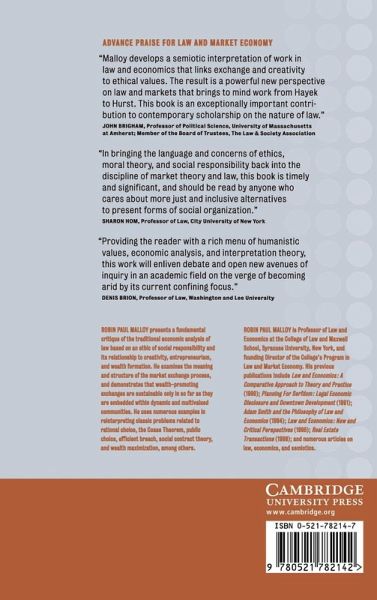 This integrated study of law, economics and Peircian semiotics re-examines the relationship between law and market theory, and introduces the idea of law and market economy. Overcoming the traditional dichotomy between efficiency and justice, Malloy focuses on the relationship between creativity, entrepreneurism, and sustainable wealth formation. he shows how creativity and sustainable wealth formation have more to do with an ethic of social responsibility than with a concern for economic efficiency. In presenting his case, Malloy uses numerous examples as he reinterprets classic problems related to rational choice, the Coase Theorem, public choice, efficient breach, social contract theory, and wealth maximization, among others.