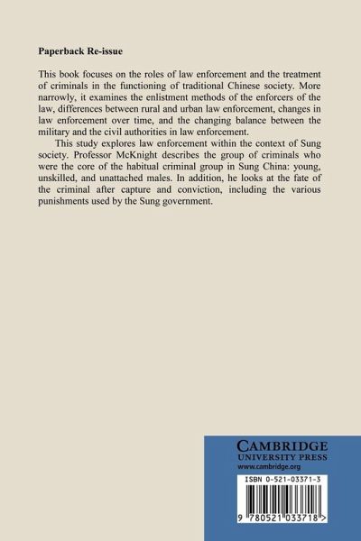 This study examines law enforcement within the context of Sung society. Professor McKnight shows that the group of criminals who were the core of the habitual criminal group in Sung China were young unattached males with few lifeskills. What became of the criminal after capture and conviction is also an important aspect of this study, which addresses basic questions in Chinese punishment. This work is the first comprehensive study of law enforcement in traditional China. The depth and rigour to which the subject is treated would make it most appropriate for scholars in legal history and East Asian studies.