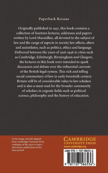 Originally published in 1937, this book contains a collection of fourteen lectures, addresses and papers written by Lord Macmillan, all devoted to the subject of law and the range of aspects in society law affects, alters and assimilates, such as politics, ethics and language. Delivered between the years of 1916-36 in cities such as Cambridge, Edinburgh, Birmingham and Glasgow, the lectures in this book were intended to spark discussion and debate over the influential currents of the British legal system. This rich and telling social commentary of law in early twentieth century Britain will be of considerable value to law scholars and is also a must read for the broader community of scholars in cognate fields such as political science, philosophy and the history of education.