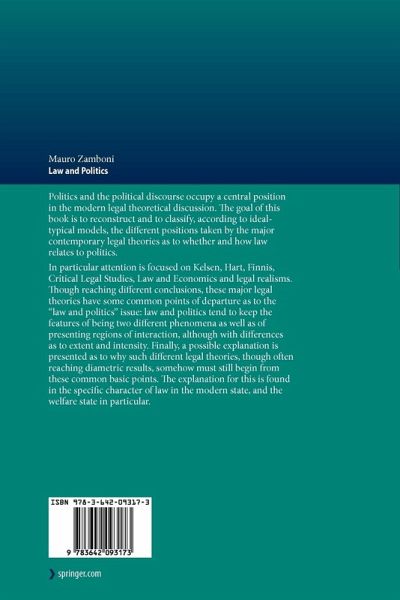 Politics and the political discourse occupy a central position in the modern legal theoretical discussion. The goal of this book is to reconstruct and to classify, according to ideal-typical models, the different positions taken by the major contemporary legal theories as to whether and how law relates to politics. In particular, attention is focused on Kelsen, Hart, Finnis, Critical Legal Studies, Law and Economics and legal realisms. Though reaching different conclusions, these major legal theories have some common points of departure as to the "law and politics" issue: law and politics tend to keep the features of being two different phenomena as well as of presenting regions of interaction, although with differences as to extent and intensity. Finally, a possible explanation is presented as to why such different legal theories, though often reaching diametric results, somehow must still begin from these common basic points. The explanation for this is found in the specific character of law in the modern state, and the welfare state in particular.