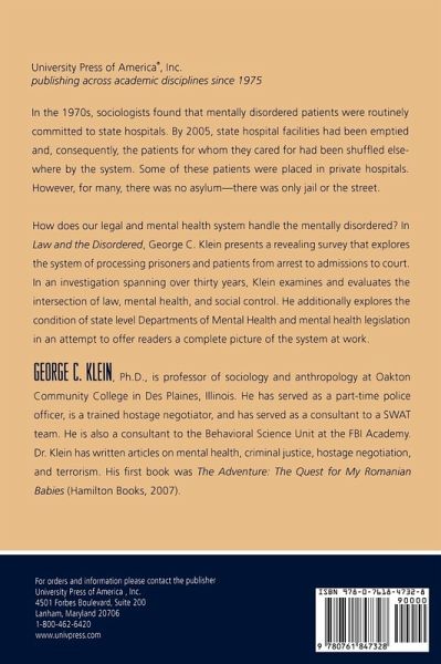 How does our legal and mental health system handle the mentally disordered? In this book, George C. Klein presents a revealing survey that explores the system of processing prisoners and patients from arrest to admissions to court. In an investigation spanning over 30-years, Klein examines and evaluates the intersection of law, mental health, and social control.