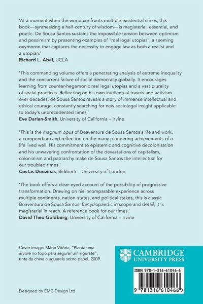 Exploring the historical experience of the Global South, Boaventura de Sousa Santos argues that state law excludes populations and peoples by deeming them invisible, irrelevant, or dangerous. Demonstrating the suffering caused by capitalism, colonialism, and patriarchy, he pursues real legal utopias by proposing realistic yet hopeful alternatives.