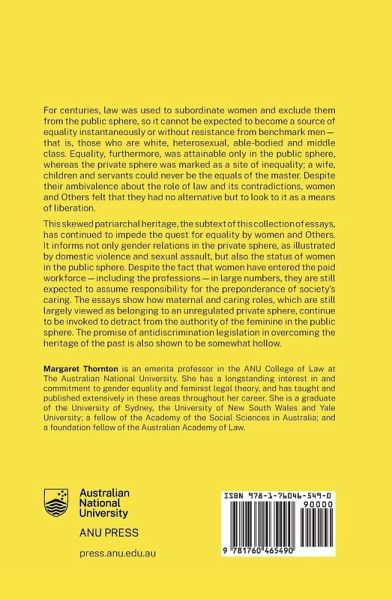 "For centuries, law was used to subordinate women and exclude them from the public sphere, so it cannot be expected to become a source of equality instantaneously or without resistance from benchmark men--that is, those who are white, heterosexual, able-bodied and middle class. Equality, furthermore, was attainable only in the public sphere, whereas the private sphere was marked as a site of inequality; a wife, children and servants could never be the equals of the master. Despite their ambivalence about the role of law and its contradictions, women and Others felt that they had no alternative but to look to it as a means of liberation. This skewed patriarchal heritage, the subtext of this collection of essays, has continued to impede the quest for equality by women and Others. It informs not only gender relations in the private sphere, as illustrated by domestic violence and sexual assault, but also the status of women in the public sphere. Despite the fact that women have entered the paid workforce--including the professions--in large numbers, they are still expected to assume responsibility for the preponderance of society's caring. The essays show how maternal and caring roles, which are still largely viewed as belonging to an unregulated private sphere, continue to be invoked to detract from the authority of the feminine in the public sphere. The promise of antidiscrimination legislation in overcoming the heritage of the past is also shown to be somewhat hollow." -- Back cover.