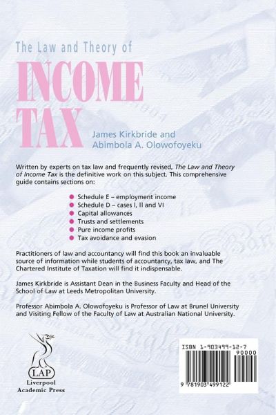 This definitive work on the law of income tax will prove invaluable to those involved in accountancy, the Inland Revenue or tax law. It will also be of vital assistance to those studying income tax on accountancy courses or studying for the Institute of Taxation's examinations. It is both comprehensive and concise and covers all aspects of this important subject.
