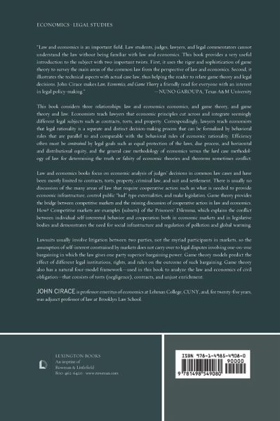 This book uses game theory to explain conflict between individual self-interested behavior and cooperation in economic markets, lawsuits, and legislative bodies. It demonstrates the need for social regulation in addition to free markets and judicial decisions in common law cases.