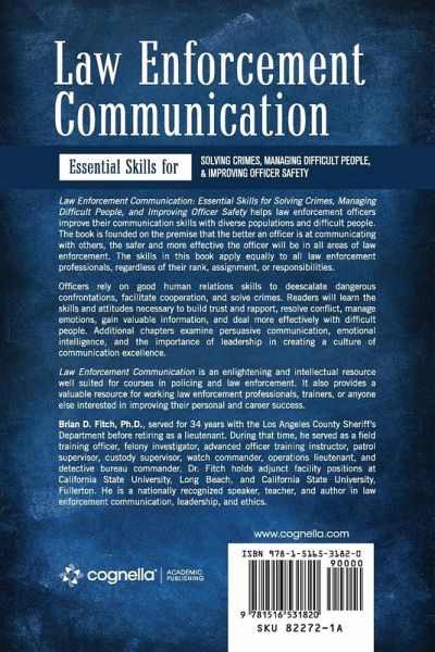 Law Enforcement Communication: Essential Skills for Solving Crimes, Managing Difficult People, and Improving Officer Safety helps law enforcement officers improve their communication skills with diverse populations and difficult people. The book is founded on the premise that the better an officer is at communicating with others, the safer and more effective the officer will be in all areas of law enforcement. The skills in this book apply equally to all law enforcement professionals, regardless of their rank, assignment, or responsibilities. Officers rely on good human relations skills to deescalate dangerous confrontations, facilitate cooperation, and solve crimes. Readers will learn the skills and attitudes necessary to build trust and rapport, resolve conflict, manage emotions, gain valuable information, and deal more effectively with difficult people. Additional chapters examine persuasive communication, emotional intelligence, and the importance of leadership in creating a culture of communication excellence. Law Enforcement Communication is an enlightening and intellectual resource well suited for courses in policing and law enforcement. It also provides a valuable resource for working law enforcement professionals, trainers, or anyone else interested in improving their personal and career success. Brian D. Fitch, Ph.D., served for 34 years with the Los Angeles County Sheriff's Department before retiring as a lieutenant. During that time, he served as a field training officer, felony investigator, advanced officer training instructor, patrol supervisor, custody supervisor, watch commander, operations lieutenant, and detective bureau commander. Dr. Fitch held adjunct facility positions at California State University, Long Beach, and California State University, Fullerton. He was a nationally recognized speaker, teacher, and author in law enforcement communication, leadership, and ethics.