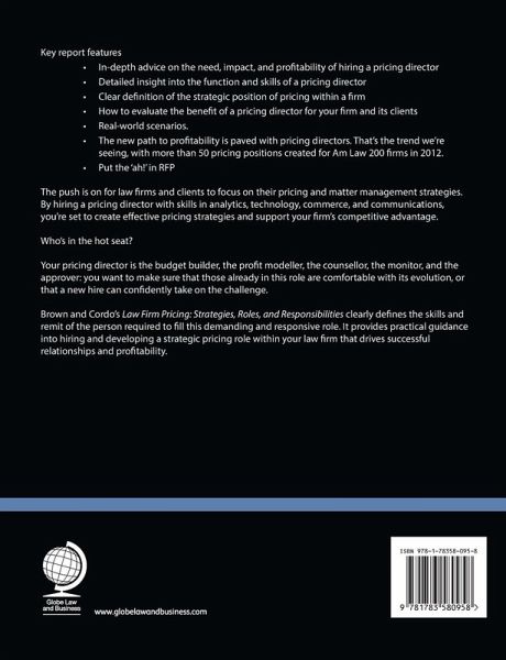 This report clearly defines the skills and responsibilities of the pricing director and will help law firms to develop strategic pricing.