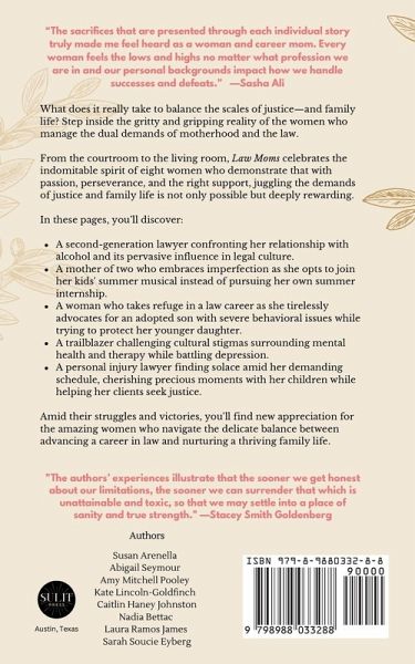 What does it really take to balance the scales of justice-and family life? Step inside the gritty and gripping reality of the women who juggle the dual demands of motherhood and the legal profession. Law Moms celebrates the indomitable spirit of eight women who navigate the complexities of law careers alongside the joys and challenges of motherhood. These narratives shine a light on the resilience, determination, and grace it takes to navigate both worlds with success and satisfaction. From the courtroom to the living room, these women demonstrate that with passion, perseverance, and the right support, balancing the scales of justice and family life is not only possible but deeply rewarding. In these pages, you'll discover: A second-generation lawyer confronting her relationship with alcohol and its pervasive influence in legal culture. A mother of two who embraces imperfection as she opts to join her kids' summer musical instead of pursuing her own summer internship. A woman who takes refuge in a law career as she tirelessly advocates for an adopted son with severe behavioral issues while trying to protect her younger daughter. A trailblazer challenging cultural stigmas surrounding mental health and therapy while battling depression. A personal injury lawyer finding solace amid her demanding schedule, cherishing precious moments with her children while helping her clients seek justice. Susan Arenella, Abigail Seymour, Amy Mitchell Pooley, Kate Lincoln-Goldfinch, Caitlin Haney Johnston, Nadia Bettac, Laura Ramos James, and Sarah Soucie Eyberg share their journeys of resilience, evolution, and the tenacity to push through adversity. Amid their struggles and victories, you'll find new appreciation for the amazing women who navigate the delicate balance between advancing a career in law and nurturing a thriving family life.