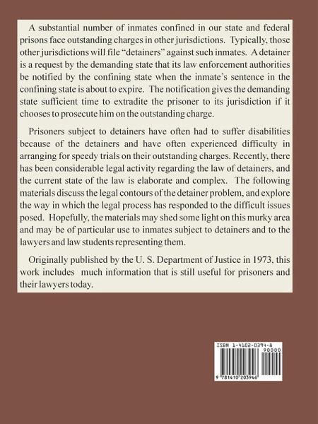 A substantial number of inmates confined in our state and federal prisons face outstanding charges in other jurisdictions. Typically, those other jurisdictions will file "detainers" against such inmates. A detainer is a request by the demanding state that its law enforcement authorities be notified by the confining state when the inmate's sentence in the confining state is about to expire. The notification gives the demanding state sufficient time to extradite the prisoner to its jurisdiction if it chooses to prosecute him on the outstanding charge. Prisoners subject to detainers have often had to suffer disabilities because of the detainers and have often experienced difficulty in arranging for speedy trials on their outstanding charges. Recently, there has been considerable legal activity regarding the law of detainers, and the current state of the law is elaborate and complex. The following materials discuss the legal contours of the detainer problem, and explore the way in which the legal process has responded to the difficult issues posed. Hopefully, the materials may shed some light on this murky area and may be of particular use to inmates subject to detainers and to the lawyers and law students representing them. Originally published by the U. S. Department of Justice in 1973, this work includes much information that is still useful for prisoners and their lawyers today.