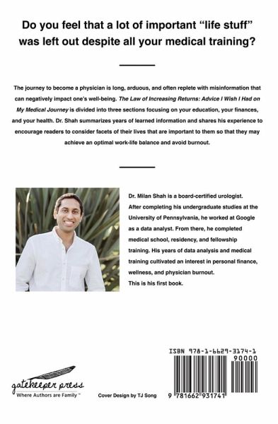 The journey to become a physician is long and arduous, and often replete with misinformation that may negatively impact our well-being. The Law of Increasing Returns: Advice I Wish I Had on My Medical Journey is divided into three sections-focusing on your education, your finances, and your health. Dr. Shah summarizes years of learned information and shares his experience to encourage readers to consider facets of their lives that are important to them so that they may achieve an optimal work-life balance and avoid burnout.