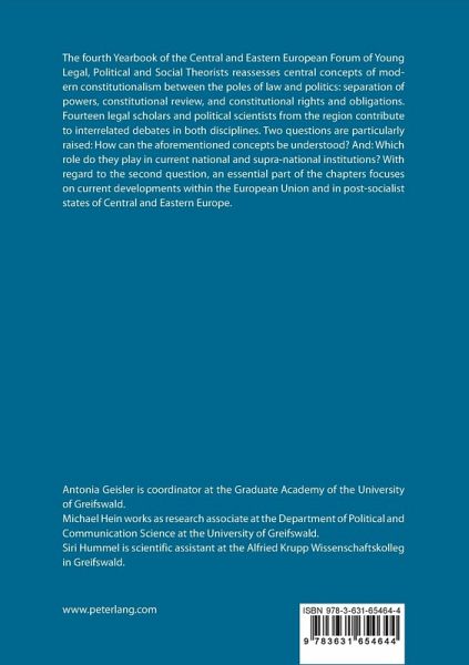 The fourth Yearbook of the Central and Eastern European Forum of Young Legal, Political and Social Theorists reassesses central concepts of modern constitutionalism between the poles of law and politics: separation of powers, constitutional review, and constitutional rights and obligations. Fourteen legal scholars and political scientists from the region contribute to interrelated debates in both disciplines. Two questions are particularly raised: How can the aforementioned concepts be understood? And: Which role do they play in current national and supra-national institutions? With regard to the second question, an essential part of the chapters focuses on current developments within the European Union and in post-socialist states of Central and Eastern Europe.