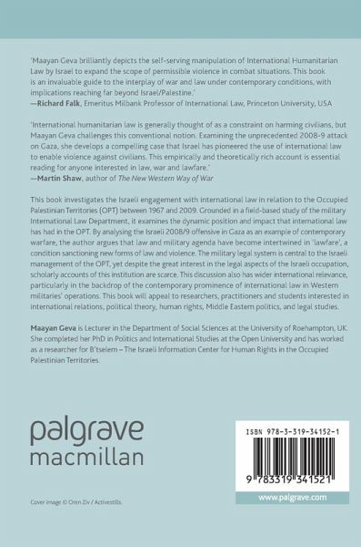 This book investigates the Israeli engagement with international law in relation to the Occupied Palestinian Territories (OPT) between 1967 and 2009. Grounded in a field-based study of the military International Law Department, it examines the dynamic position and impact that international law has had in the OPT. By analysing the Israeli 2008/9 offensive in Gaza as an example of contemporary warfare, the author argues that law and military agenda have become intertwined in 'lawfare', a condition sanctioning new forms of law and violence. The military legal system is central to the Israeli management of the OPT, yet despite the great interest in the legal aspects of the Israeli occupation, scholarly accounts of this institution are scarce. This discussion also has wider international relevance, particularly in the backdrop of the contemporary prominence of international law in Western militaries' operations. This book will appeal to researchers, practitioners and students interestedin international relations, political theory, human rights, Middle Eastern politics, and legal studies.