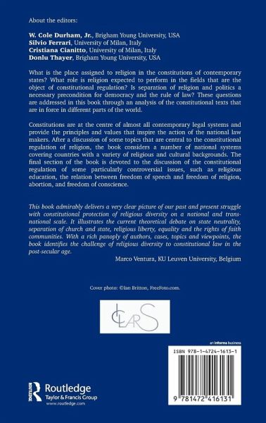 What is the place assigned to religion in the constitutions of contemporary States? What role is religion expected to perform in the fields that are the object of constitutional regulation? Is separation of religion and politics a necessary precondition for democracy and the rule of law? These questions are addressed in this book through an analysis of the constitutional texts that are in force in different parts of the world. Constitutions are at the centre of almost all contemporary legal systems and provide the principles and values that inspire the action of the national law-makers. After a discussion of some topics that are central to the constitutional regulation of religion, the book considers a number of national systems covering countries with a variety of religious and cultural backgrounds. The final section of the book is devoted to the discussion of the constitutional regulation of some particularly controversial issues, such as religious education, the relation between freedom of speech and freedom of religion, abortion, and freedom of conscience.