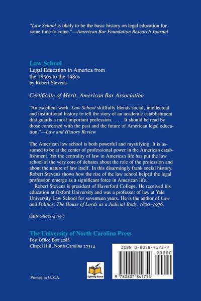 In this first general history of legal education, Stevens traces the development of law schools, the legal profession, and legal thought, relating their evolution to intellectual, political, and social trends. He describes how the establishment gained power over education after 1920 and how, in the past two decades, both students and the practicing profession have questioned this authority. He also examines the implications of the "legal revolution" and new opportunities for women and minorities.