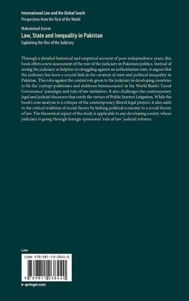 Through a detailed historical and empirical account of post-independence years, this book offers a new assessment of the role of the judiciary in Pakistani politics. Instead of seeing the judiciary as helpless or struggling against an authoritarian state, it argues that the judiciary has been a crucial link in the creation of state and political inequality in Pakistan. This rubs against the central role given to the judiciary in developing countries to fix the 'corrupt politicians and stubborn bureaucracies' in the World Bank's 'Good Governance' paradigm and rule of law initiatives. It also challenges the contemporary legal and judicial discourse that extols the virtues of Public Interest Litigation. While the book's core analysis is a critique of the contemporary liberal legal project, it also adds to the critical tradition of social theory by linking political economy to a social theory of law. The theoretical aspect of the study is applicable to any developing society whose judiciary is going through foreign-sponsored 'rule of law' judicial reforms.