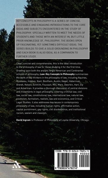 The philosophy of law - inquiry into the origins, nature and theory of laws and legal principles, and those concepts that structure the practice of law - is of great importance in moral and political philosophy, as well as being a major area of philosophical concern in its own right. Clear, concise and comprehensive, this is the ideal introduction to the philosophy of law for those studying it for the first time. Drawing upon both the analytic Anglo-American and Continental schools of philosophy, Law: Key Concepts in Philosophy summarises the work of key thinkers in the philosophy of law, including Rousseau, Hobbes, Austin, Hegel, Mill, Marx, Dworkin and Rawls. It provides lucid and thorough explication and analysis of central concerns in legal philosophy, covering criminal law, civil law and constitutional law. Finally, the text also addresses key issues in contemporary philosophy of law, including human rights, international law and questions of race and gender.