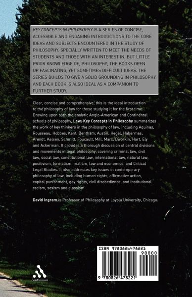 The philosophy of law - inquiry into the origins, nature and theory of laws and legal principles, and those concepts that structure the practice of law - is of great importance in moral and political philosophy, as well as being a major area of philosophical concern in its own right. Clear, concise and comprehensive, this is the ideal introduction to the philosophy of law for those studying it for the first time. Drawing upon both the analytic Anglo-American and Continental schools of philosophy, Law: Key Concepts in Philosophy summarises the work of key thinkers in the philosophy of law, including Rousseau, Hobbes, Austin, Hegel, Mill, Marx, Dworkin and Rawls. It provides lucid and thorough explication and analysis of central concerns in legal philosophy, covering criminal law, civil law and constitutional law. Finally, the text also addresses key issues in contemporary philosophy of law, including human rights, international law and questions of race and gender.