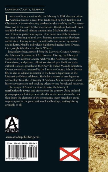 Lawrence County was founded on February 6, 1818, the year before Alabama became a state, from lands ceded by the Cherokee and Chickasaw. It is a rural county bordered to the north by the Tennessee River and to the south by the waterfall-rich Bankhead National Forest and filled with small vibrant communities. Moulton, the county seat, features a picturesque square. Courtland, an antebellum town, was once a bustling railroad port. Featured topics include Southern architecture, leaving for war, the railroad boom, cotton agriculture, and industry. Notable individuals highlighted include Jesse Owens, Gen. Joseph Wheeler, and Annie Wheeler.