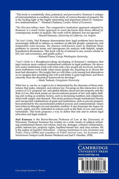 Focusing on the interaction of law-making, law-interpreting, and law-enforcing institutions as these bear on US property rights law and debates about private property and the rule of law, in this 2002 book Komesar paints an unconventional picture of law, rights shifting and cycling as systemic factors.