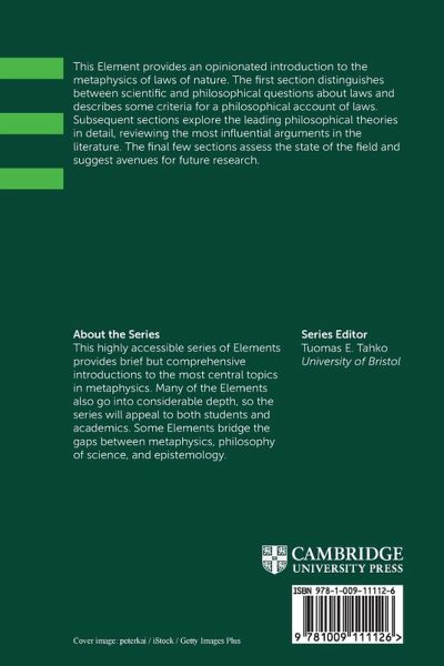 This Element provides an opinionated introduction to the metaphysics of laws of nature. It distinguishes between scientific and philosophical questions about laws and explores the leading philosophical theories in detail, reviewing the most influential arguments in the literature.