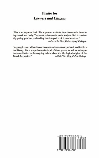 Not only were lawyers heavily represented among the men who rose to power in France in 1789, to a large extent, they also shapted the evolution of French political culture under the ancien régime. David Bell's new book traces the development of the French legal profession between the reign of Louis XIV and the French Revolution, showing how lawyers influenced, and were influenced by, the period's passionate political and religious conflicts. Bell analyses how these key "middling" figures in French society were transformed from the institutional technicians of absolute monarchy into the self-appointed "voices of public opinion," and leaders of opposition political journalism. He describes the birth of an independent legal profession in the late seventeenth century, its alientation from the monarchy under the pressure of religious disputes in the early eighteenth, and its transformation into a standard-bearer of "enlightened" opinion in the decades before the Revolution. His work illuminates the workings of politics under a theoretically absolute monarchy, and the importance of long-standing constitutional debates for the ideological origins of the Revolution. It also sheds new light on the development of the modern professions, and of the middle classes in France.